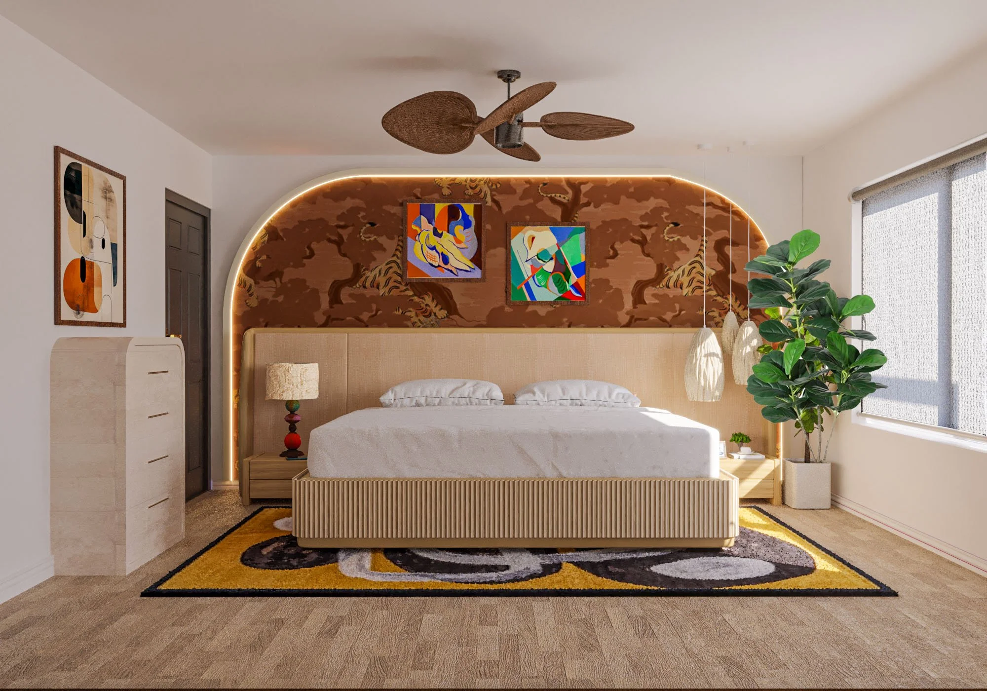 This Bellevue home is a seamless blend of modern interior design and curated warmth. The bedrooms feature custom wood paneling, bold accent walls, and eclectic art, brought together with layered lighting and textured furnishings. Natural elements, sculptural décor, and thoughtful material choices reflect a refined yet inviting aesthetic—true to the Pacific Northwest design ethos.